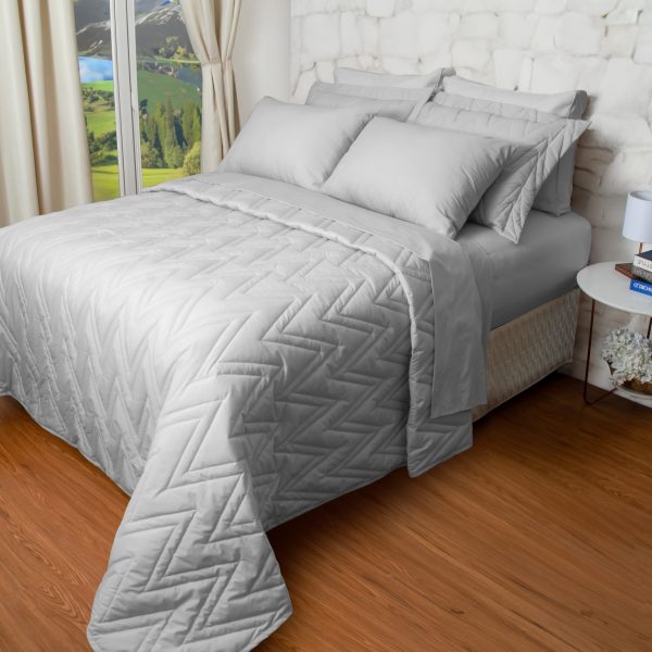 Kit Colcha Matelassê Zig Solteiro King 200 Fios – Prata
