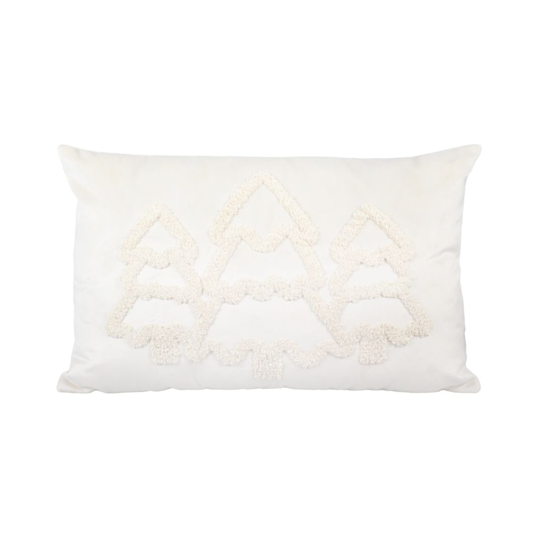 Almofada Árvore em Veludo Off-White | Bordado Bouclé Off-White – 35x52cm