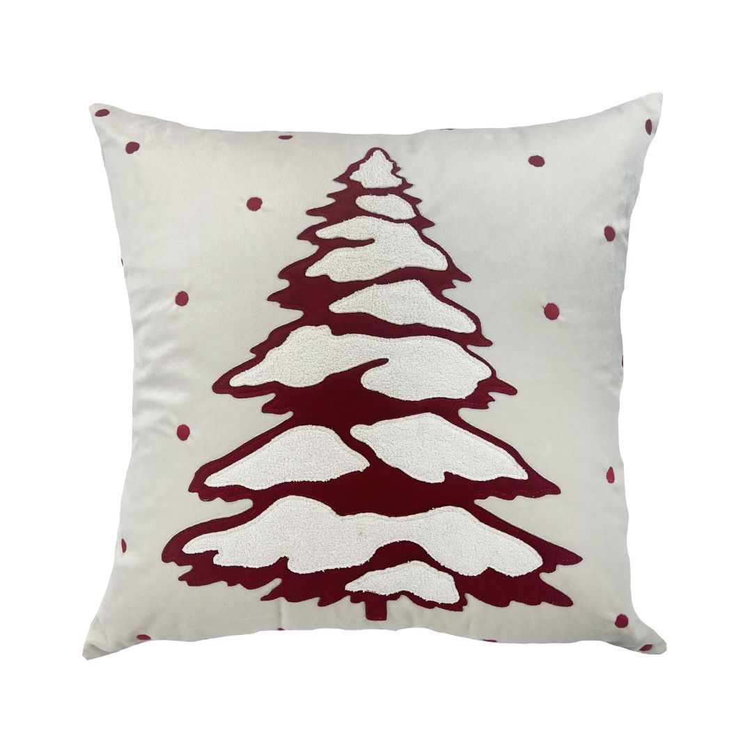 Almofada Árvore em Veludo Off-White | com Aplicação Vermelha – 45x45cm