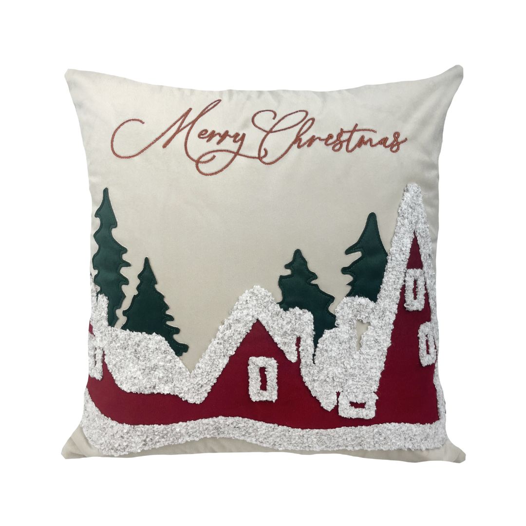 Com 45x45cm, é ideal para compor sofás, poltronas ou camas, criando um ambiente acolhedor e cheio de estilo. O contraste entre o off-white e o verde traz frescor e harmonia, perfeito para uma decoração natalina sutil e refinada.