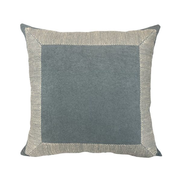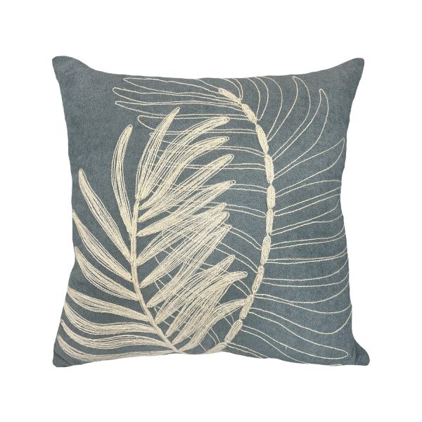 Almofada Boucle Azul | Bordado Rami Folhas Cru – 52x52cm
