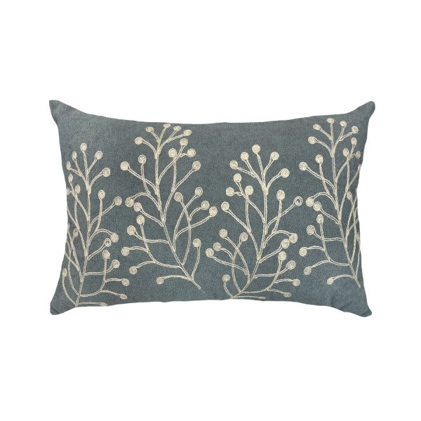 Almofada Boucle Azul | Bordado Rami Flor Cru – 35x52cm