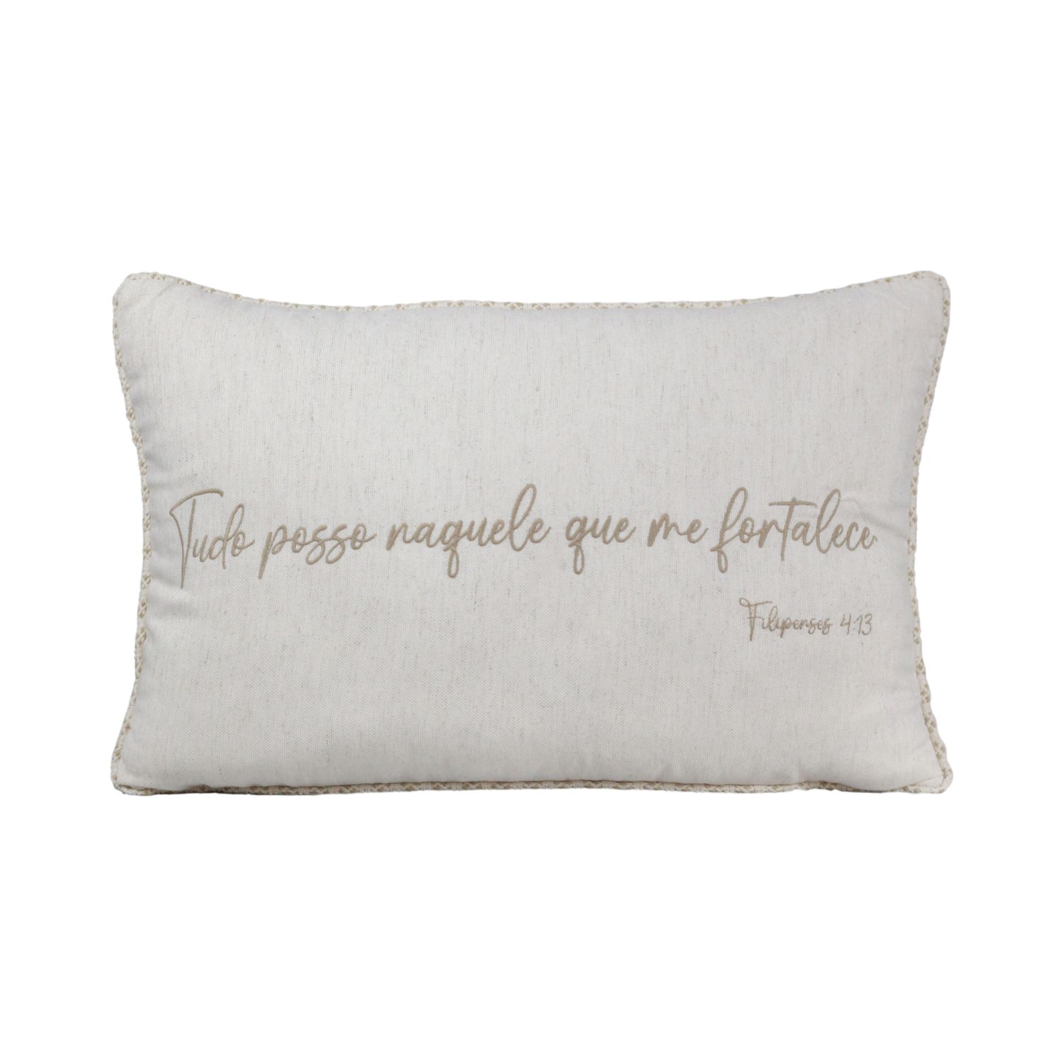 A Almofada em Linho “Filipenses 4:13” na tonalidade bege é uma peça que traduz elegância e inspiração em cada detalhe. Confeccionada em linho, tecido nobre e atemporal, proporciona um toque suave e natural, enquanto a mensagem bordada fortalece a fé e traz significado ao ambiente:
