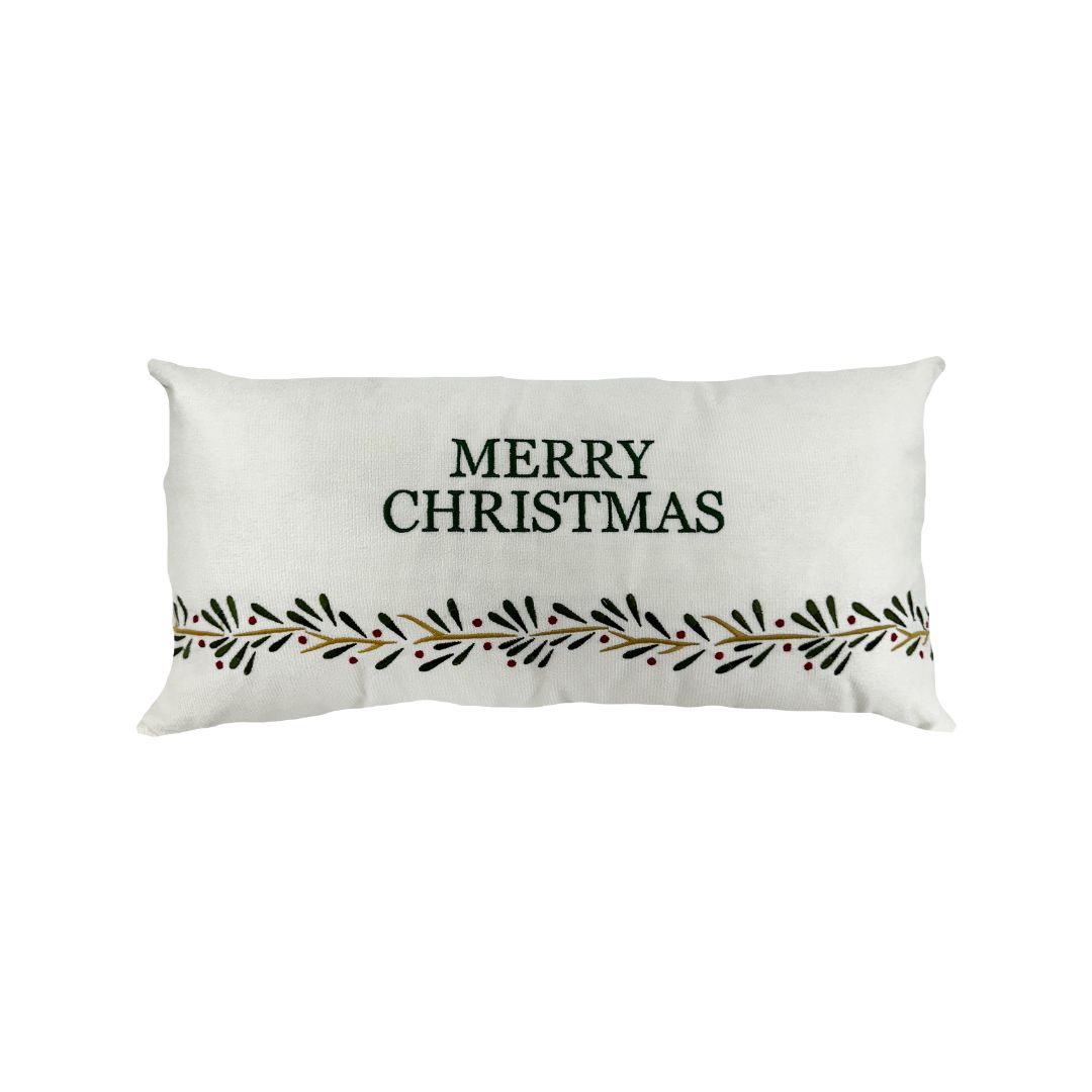 Almofada em Veludo com Bordado “Merry Christmas” | Verde – 25x52cm
