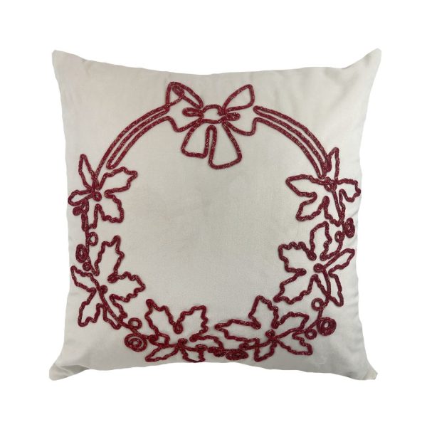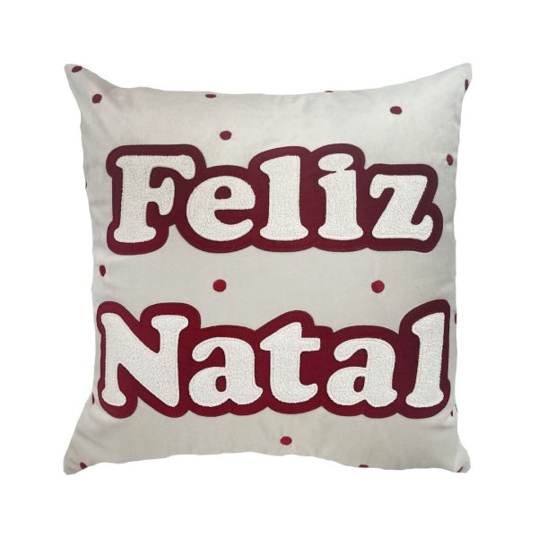 Almofada “Feliz Natal” em Veludo Off-White | com Aplicação Vermelha – 45X45cm