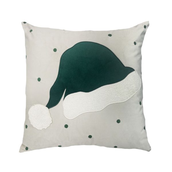 Almofada Gorro em Veludo Off-White | com Aplicação Verde – 45X45cm