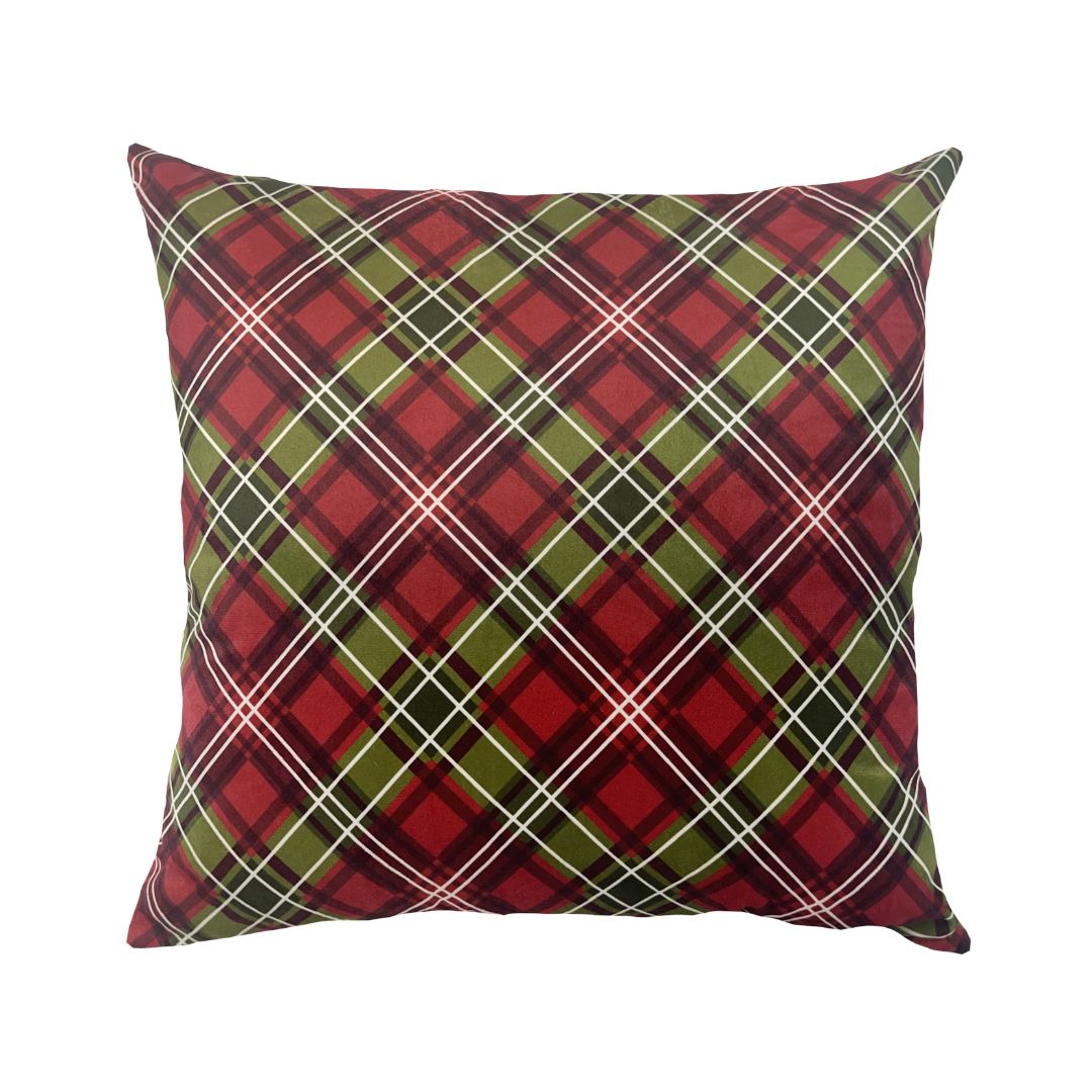 Almofada em Veludo Xadrez | Vermelho e Verde – 45x45cm