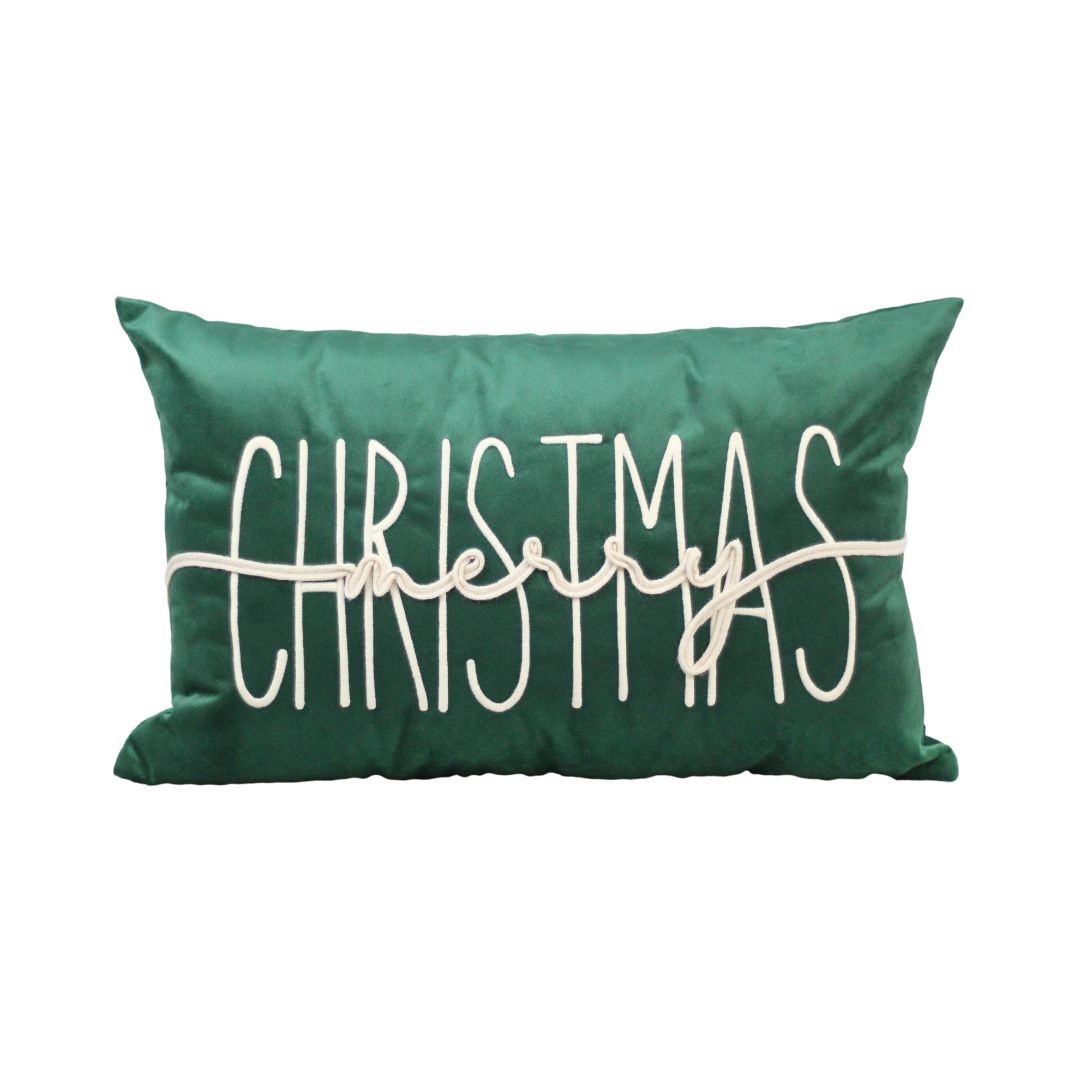 A Almofada “Merry Christmas” Verde é perfeita para trazer charme e sofisticação à decoração natalina. Confeccionada em veludo macio e elegante, possui o bordado “Merry Christmas” em cadarço cru, que cria textura e destaque delicado sobre o fundo verde, acrescentando um toque artesanal à peça.