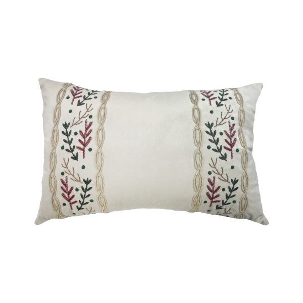 Almofada Bordada em Veludo Off-White | Rami Vermelho – 35X52cm