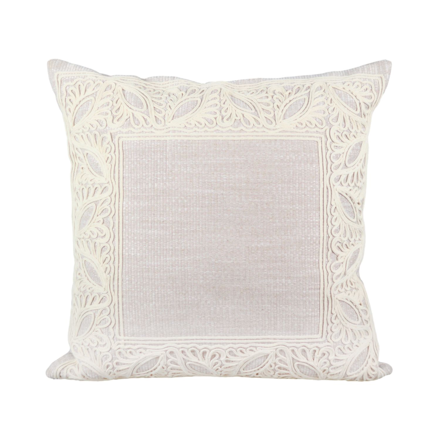 A Almofada Rústica com Aplicação de Cordão em bege com off-white é uma peça que valoriza a estética natural com um toque de sofisticação. Seu acabamento evidencia a beleza dos detalhes, enquanto a aplicação de cordão adiciona textura e um charme artesanal que enriquece a composição.