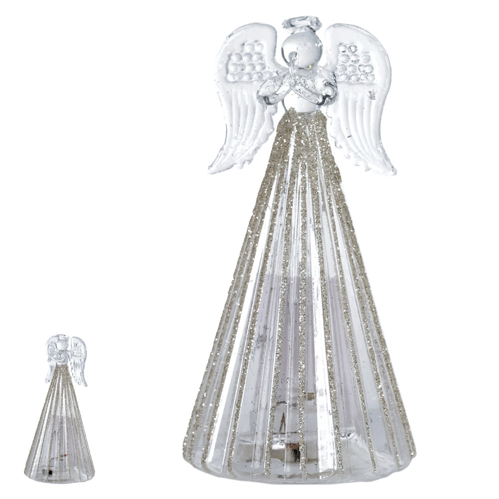 Anjo com LED | Transparente e Prata – 14x7x7cm