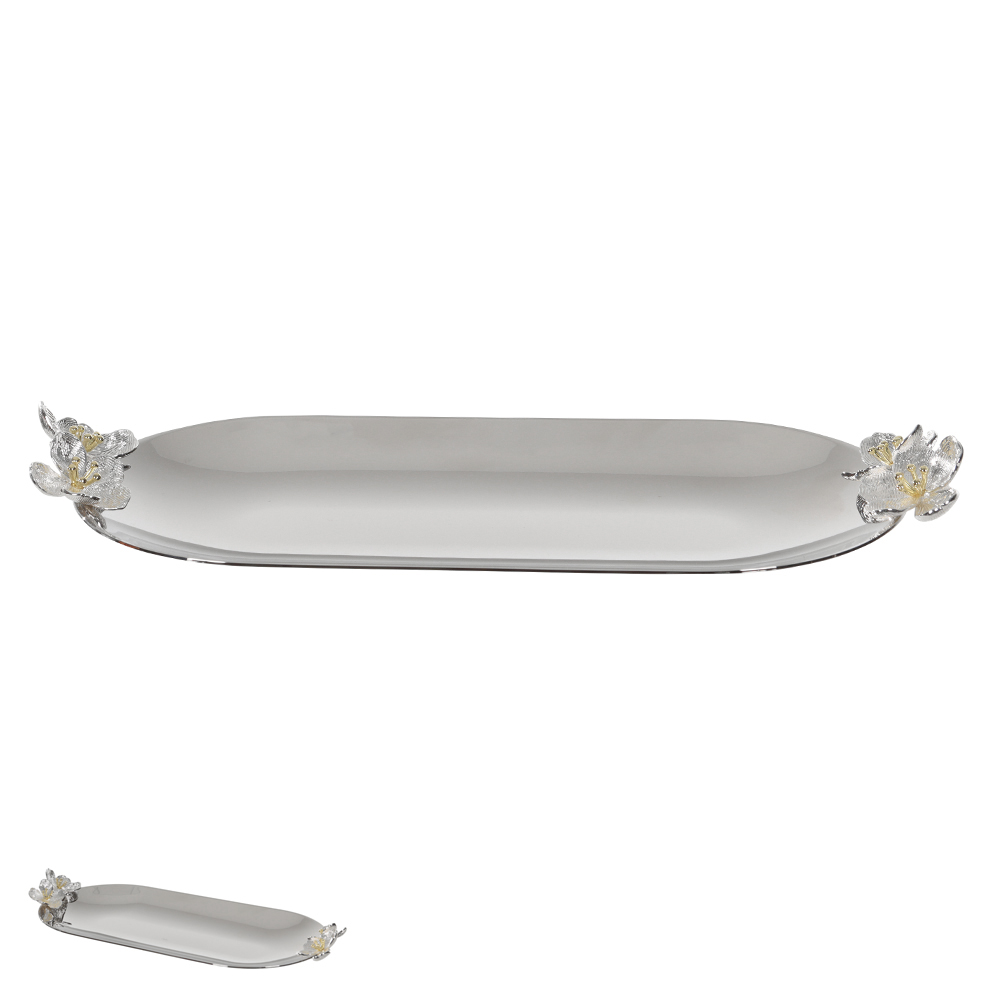 Bandeja Decorativa em Metal Blossom – Prata (4x29x13 cm)