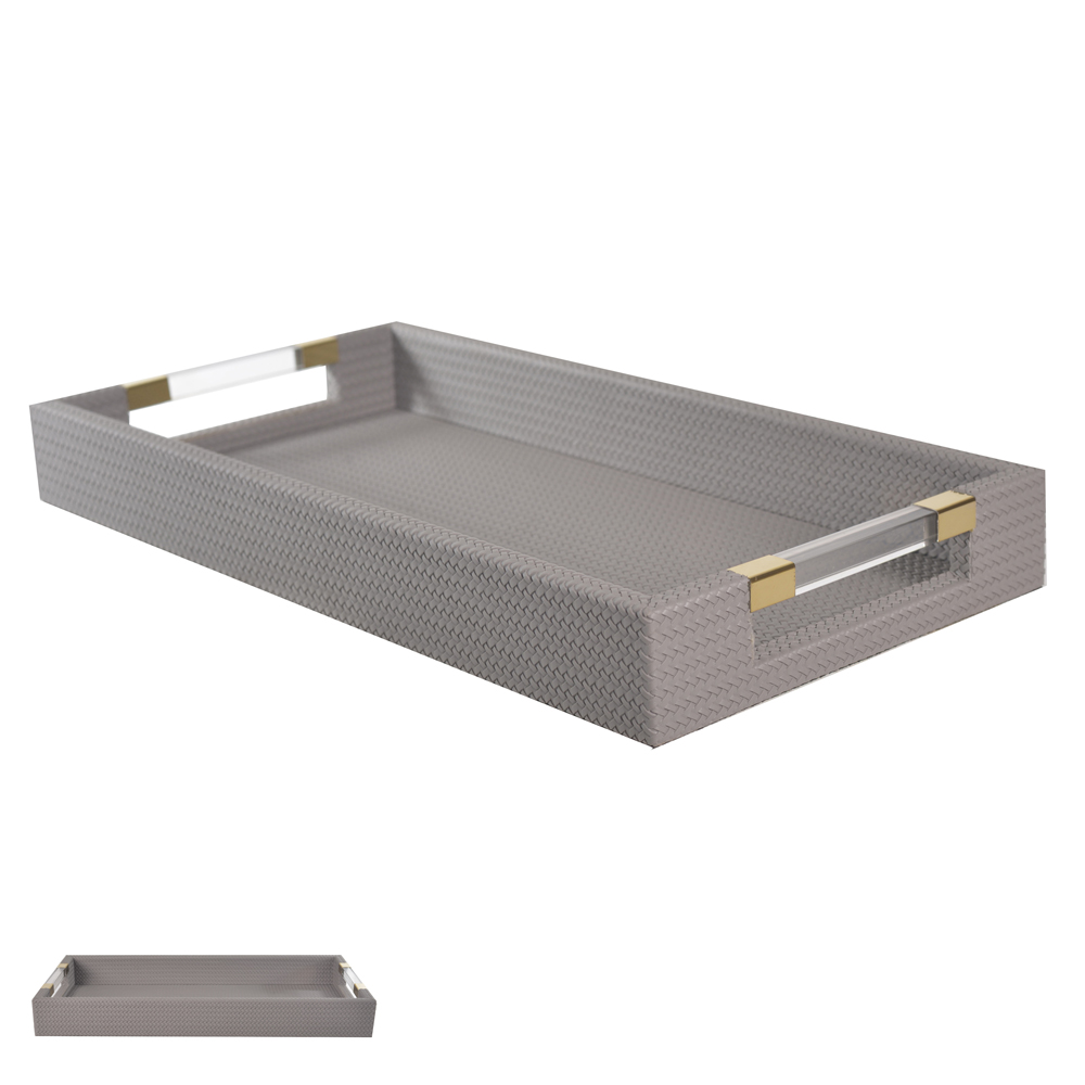 A Bandeja Decorativa em MDF com revestimento em PU na cor cinza é perfeita para compor ambientes com elegância e praticidade. Seu acabamento moderno e textura refinada trazem um toque contemporâneo, valorizando lavabos, quartos, salas ou closets.