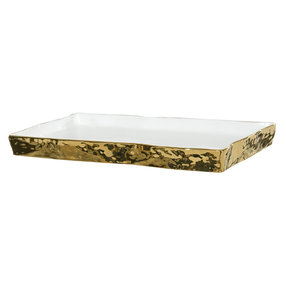 Bandeja em Porcelana | Branco e Dourado – 4x31x20cm