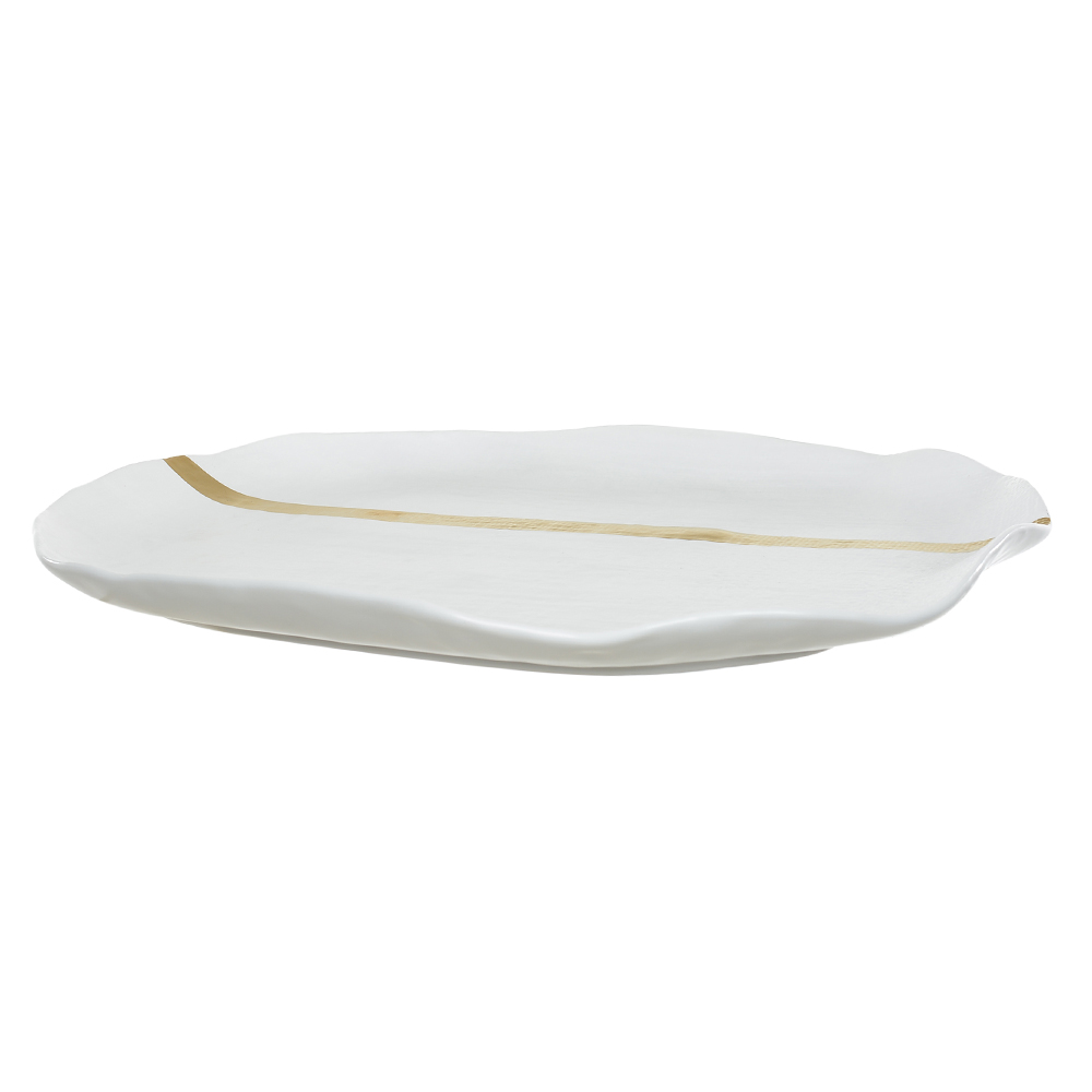 Bandeja em Porcelana | Branco e Dourado – 4x38x26cm