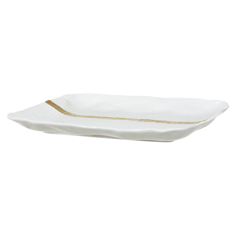 A Bandeja em Porcelana | Branco e Dourado – 4x31x20cm é uma peça elegante e sofisticada, perfeita para compor ambientes com charme e requinte.