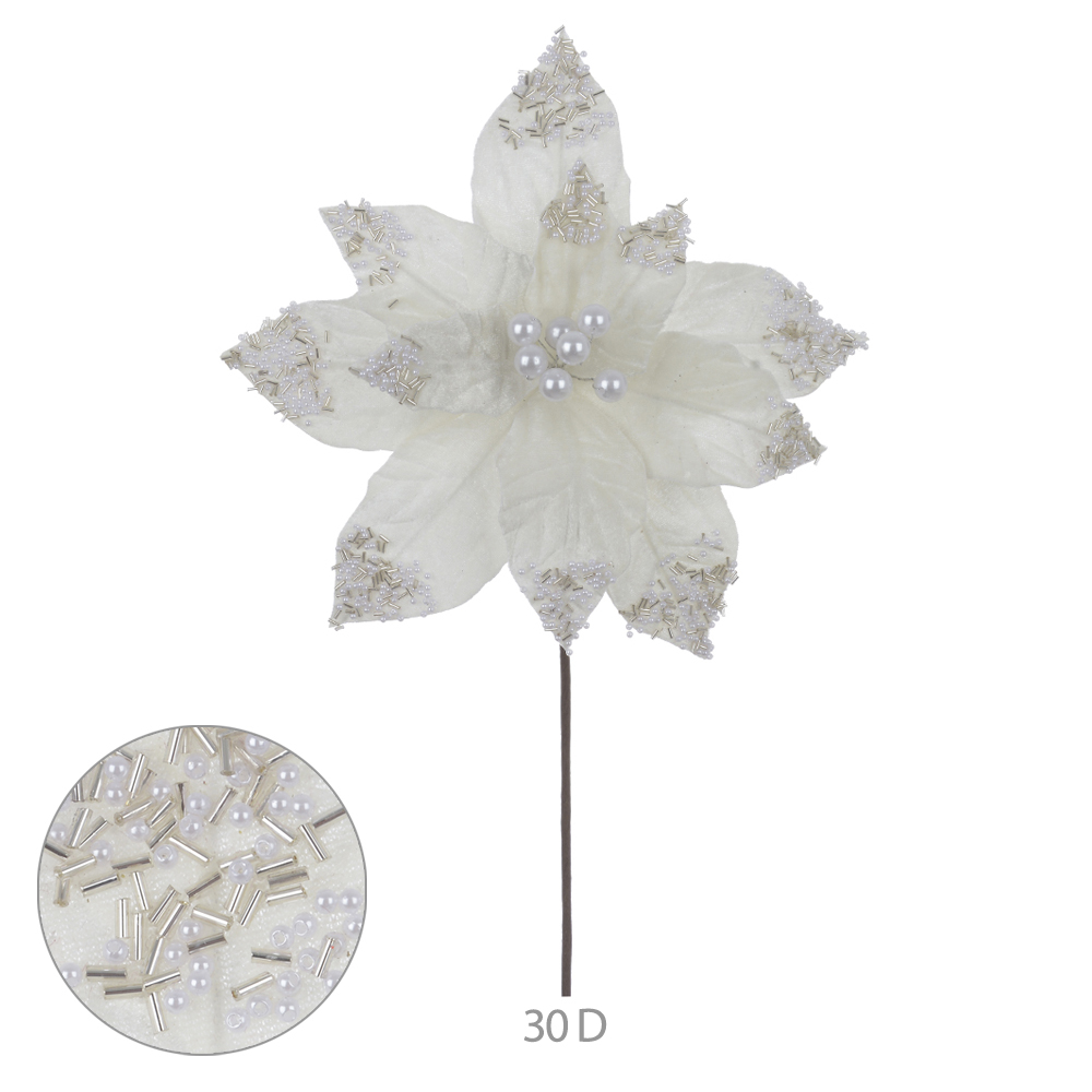 Ideal para composições em árvores, guirlandas, arranjos ou centros de mesa, essa flor simboliza a beleza clássica do Natal com um toque contemporâneo e refinado.