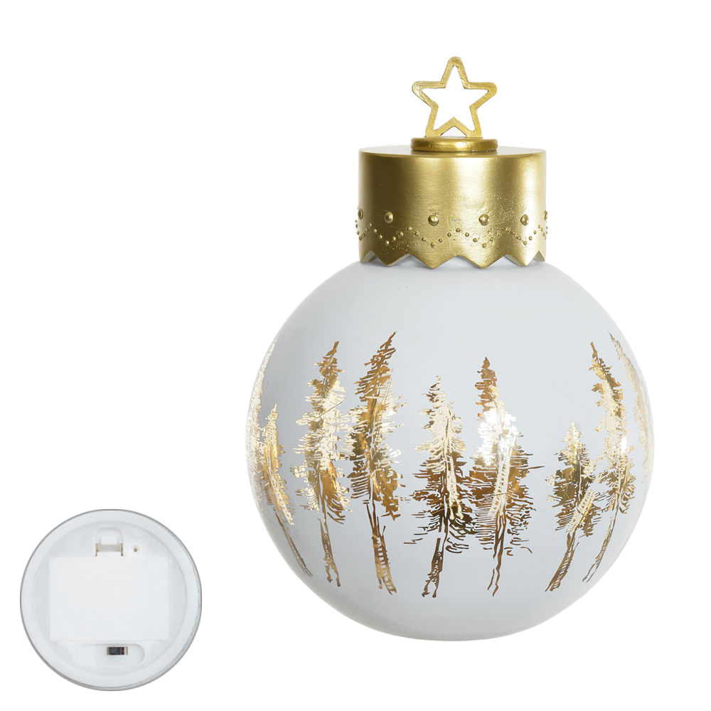 Bola Decorada com Led | Branco e Dourado – 20cm