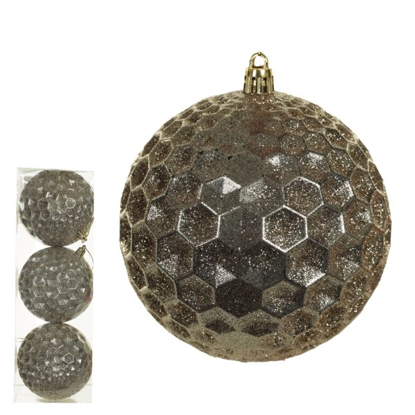 Kit 3 Bolas Decoradas em Pvc | Champanhe -10cm