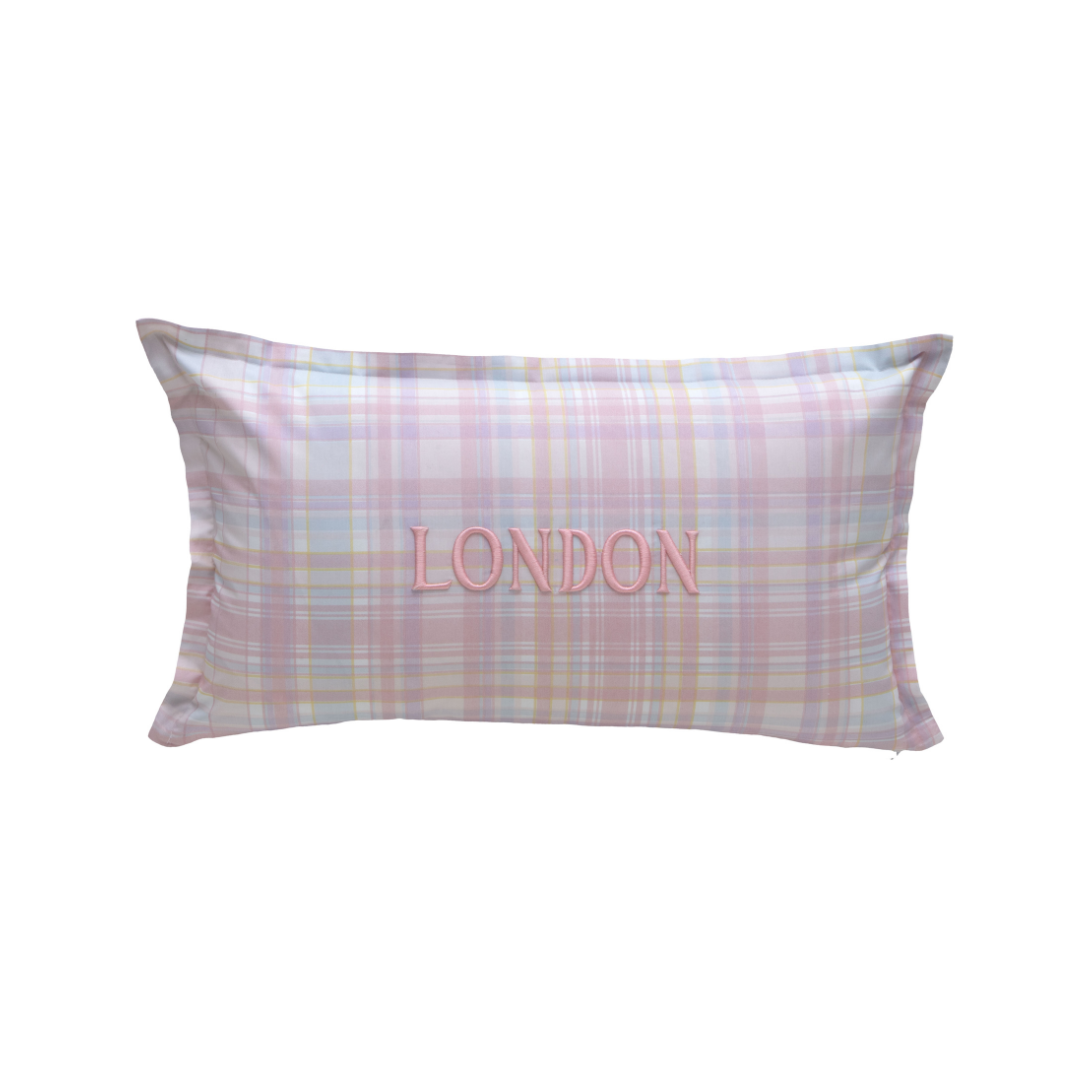 Capa de Almofada Bordada Xadrez London Rosa – 200 Fios | 35cm x 60cm