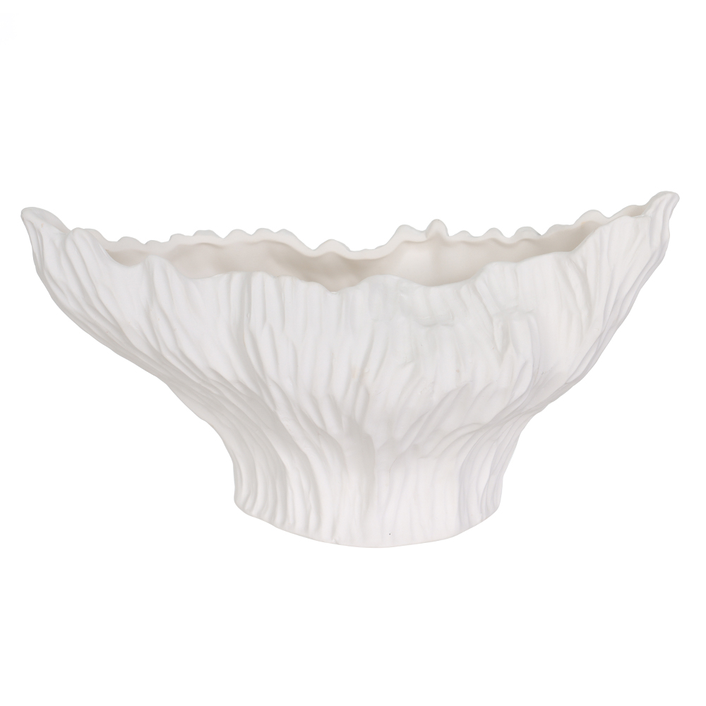 O Centro de Mesa em Cerâmica Orgânico Texturizado | Branco – 17x31x14cm é uma peça moderna que traz leveza e sofisticação para a decoração.