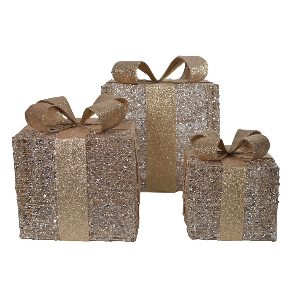Conjunto 3 Presentes com LED | Champanhe – 25cm