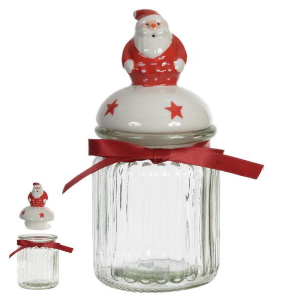 Pote de Vidro Gorro do Noel 300ml | Vermelho/ Branco – 13cm
