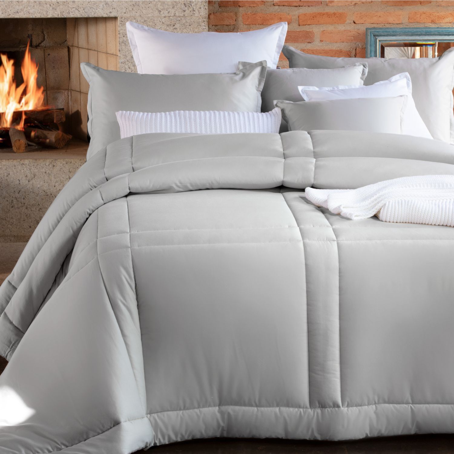Confeccionado em tecido de 300 fios, proporciona uma textura suave com leve brilho acetinado, além de excelente respirabilidade, garantindo conforto térmico em todas as estações. Seu enchimento oferece volume na medida certa, resultando em um caimento elegante que valoriza a cama.