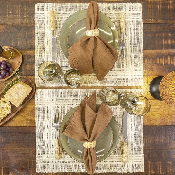 Natural, elegante e consciente, o Guardanapo Eco na cor conhaque é a escolha perfeita para quem valoriza uma mesa posta charmosa e sustentável. Com tonalidade acolhedora e sofisticada, ele se adapta facilmente a diferentes estilos, trazendo um toque orgânico e contemporâneo às composições.