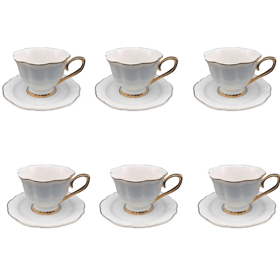 Jogo de 12 Peças para Café Monalisa com Borda Dourada | 90ml – Branco