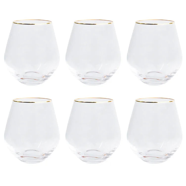 Jogo de 6 Copos para Whisky em Cristal Ecológico Gold Rim – 500ml | 12cm