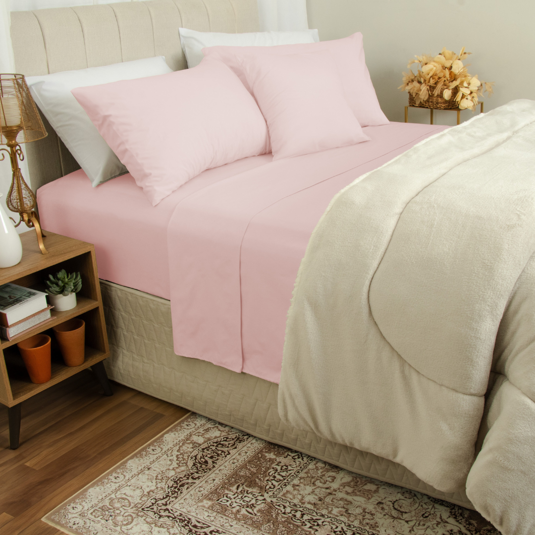 Seu tecido em Percal 180 fios garante durabilidade, resistência e um acabamento sofisticado. Além disso, sua textura suave e respirável torna esse jogo de cama perfeito para todas as estações do ano.