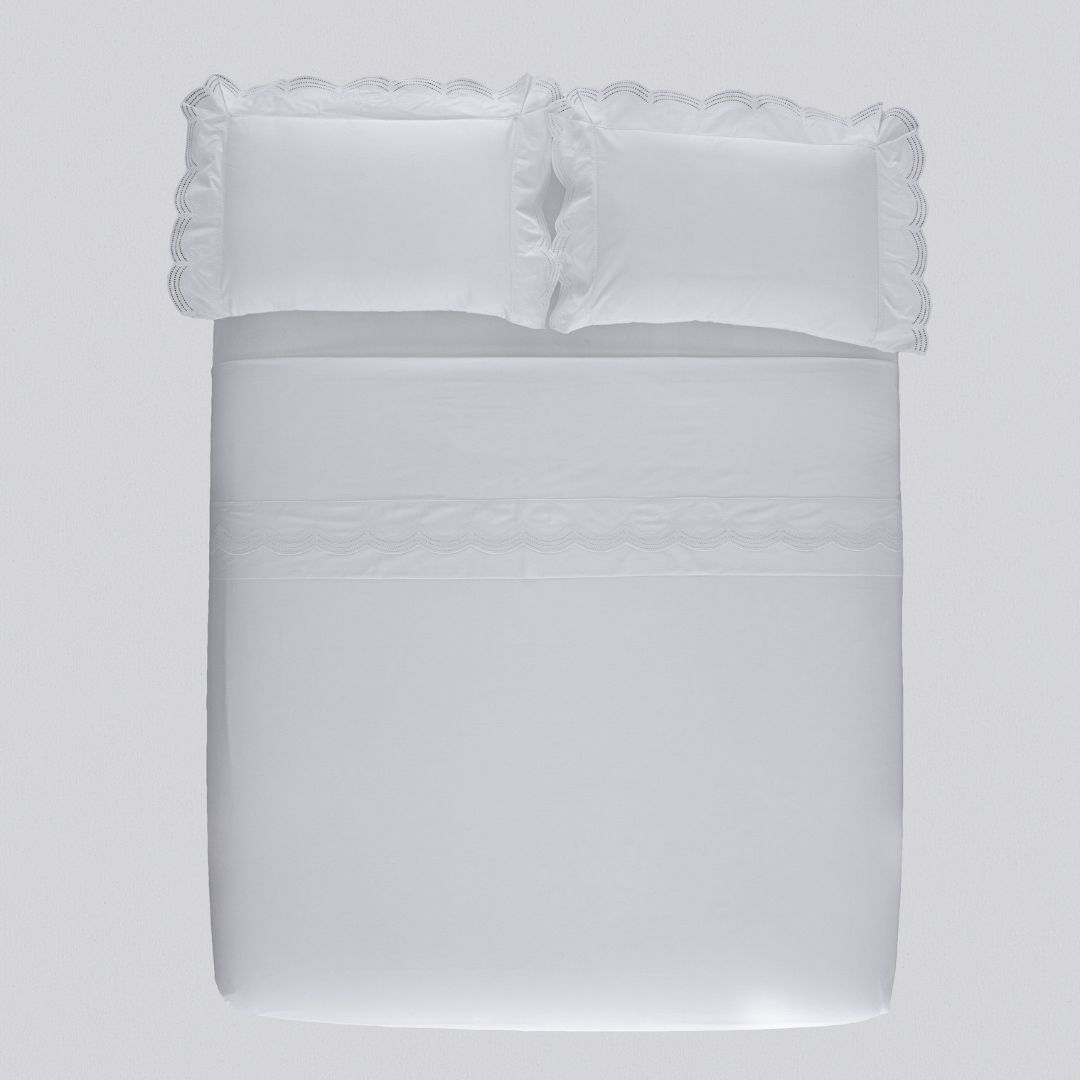 Jogo de Cama Queen Windsor Bordado Branco/Branco | 300 Fios – 2,60m x 2,50m