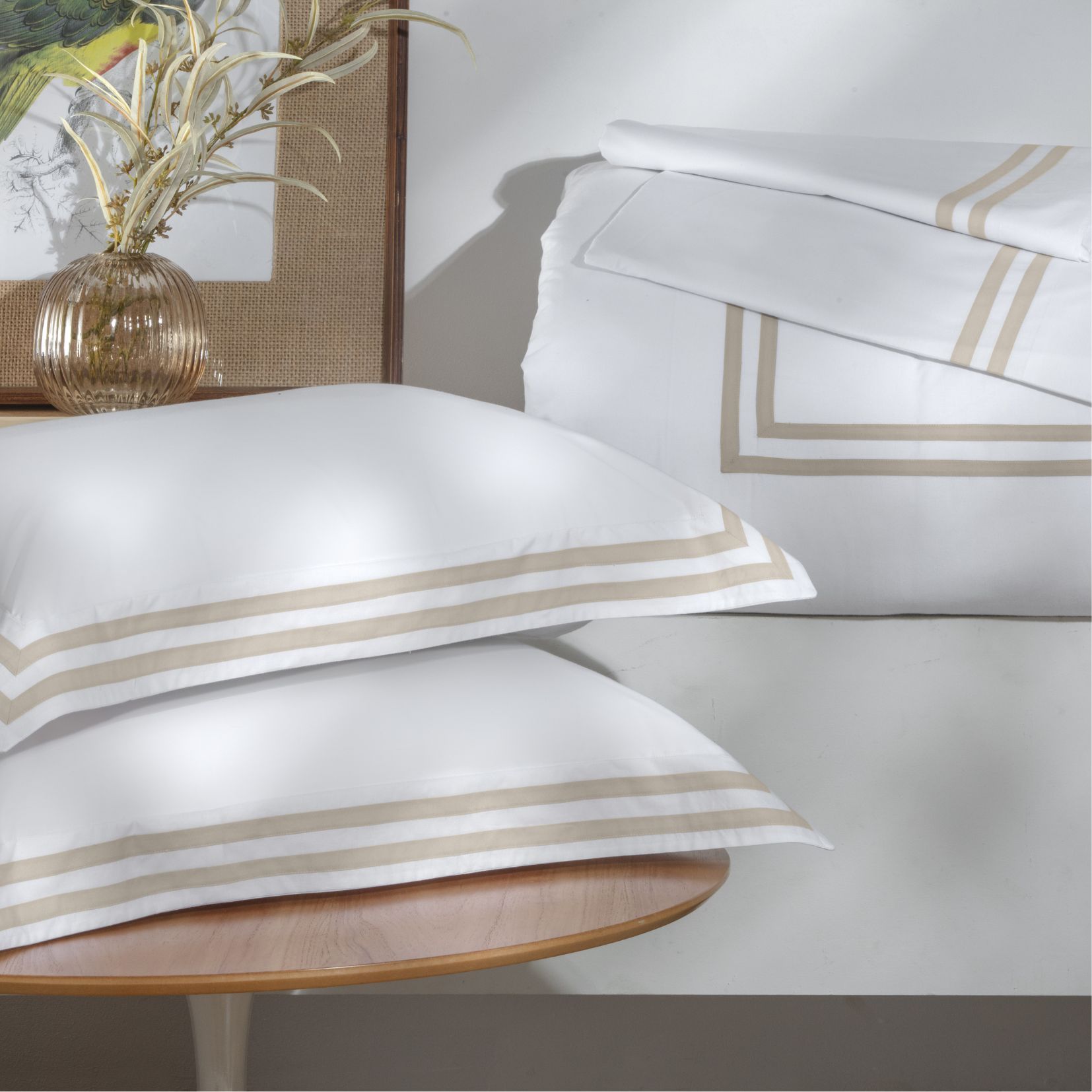 Elegância minimalista e conforto para o dia a dia. O Jogo de Cama Duale na tonalidade fendi é ideal para quem busca um enxoval sofisticado, versátil e atemporal.