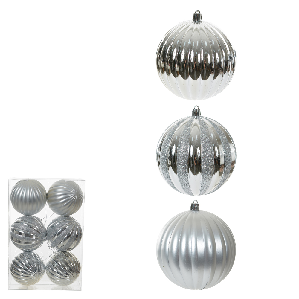 Kit 6 Bolas Decoradas | Prata – 10cm