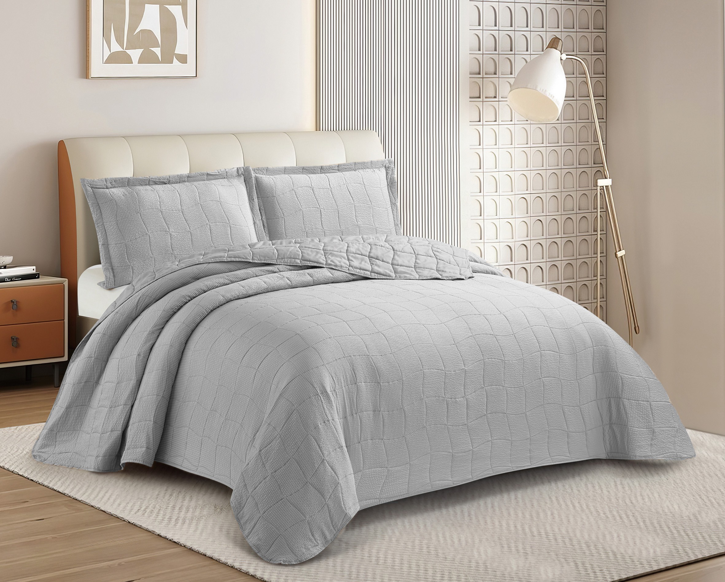 Kit Colcha Matelassê Zig Solteiro King 200 Fios – Prata