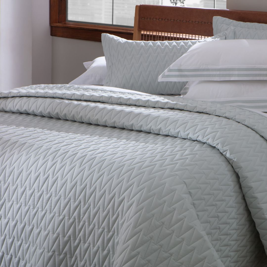 Kit Colcha Matelassê Zig Solteiro King 200 Fios – Verde Fog | 1,80m x 2,50m