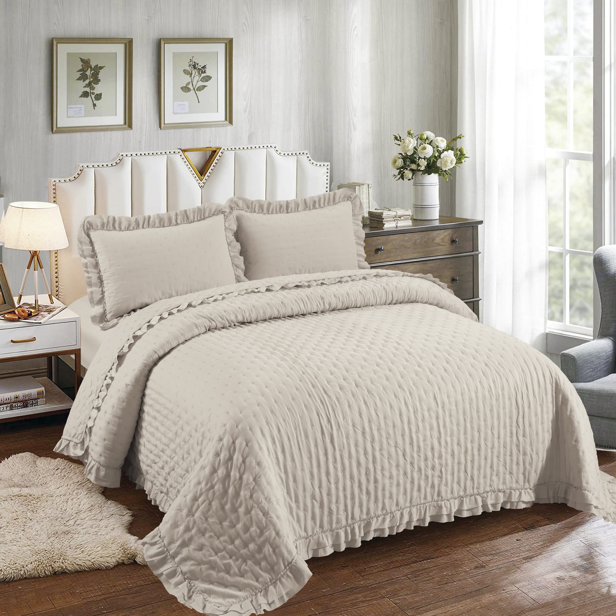 A Colcha com duplo babadinho acompanha dois porta travesseiros em Micropercal, são elegantes com textura especial em seus matelassados patch work sem costura que combina facilmente com diferentes estilos de decoração. Com um toque ultra macio que te acolhe em noites mais frescas e ocasiões especiais suas características são inconfundíveis.