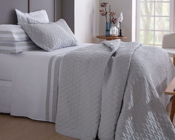 Colcha Matelassê: acabamento em debrum 3 lados, dupla face da mesma cor