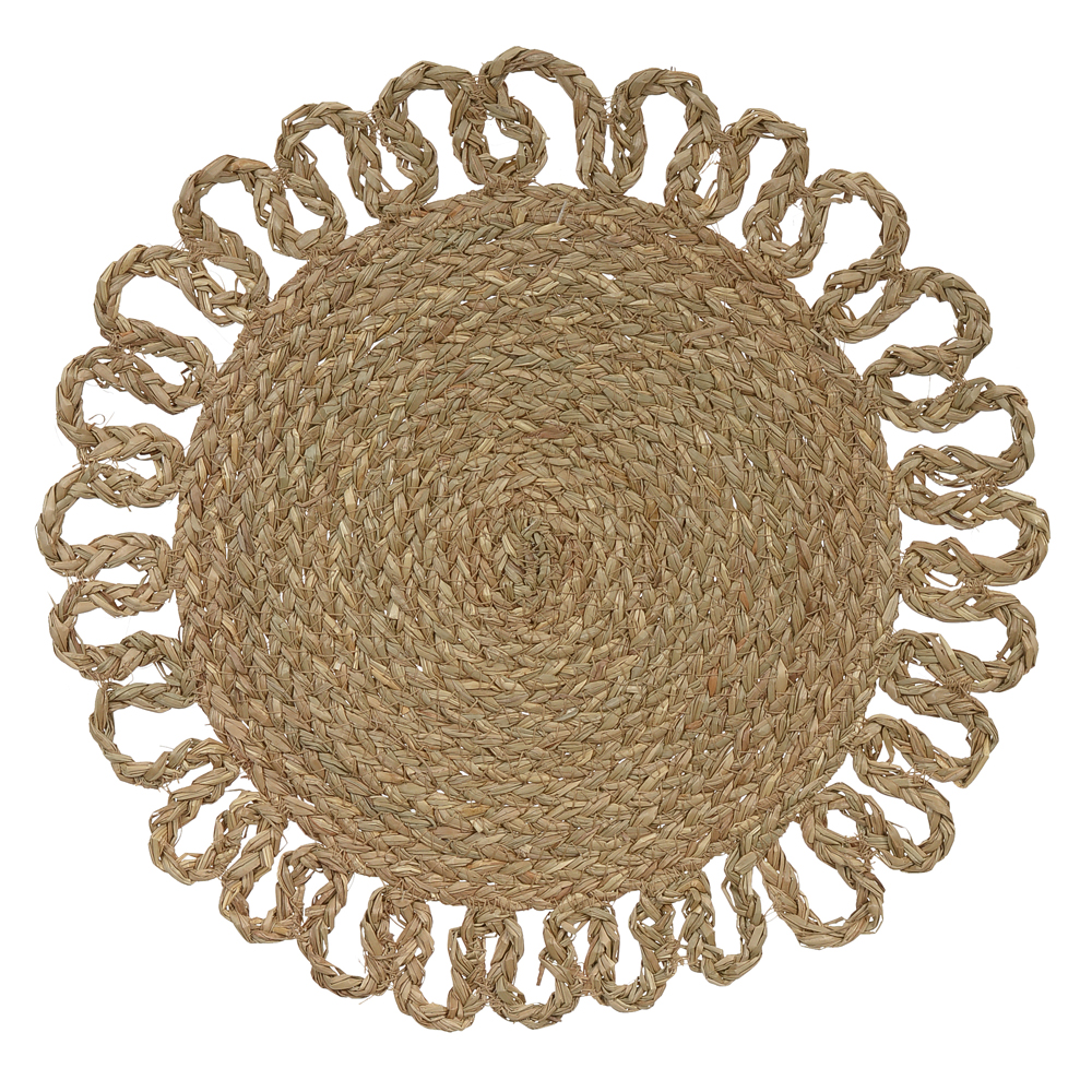 Lugar Americano Redondo de Fibra Natural com Bordado em Laços – 38 cm