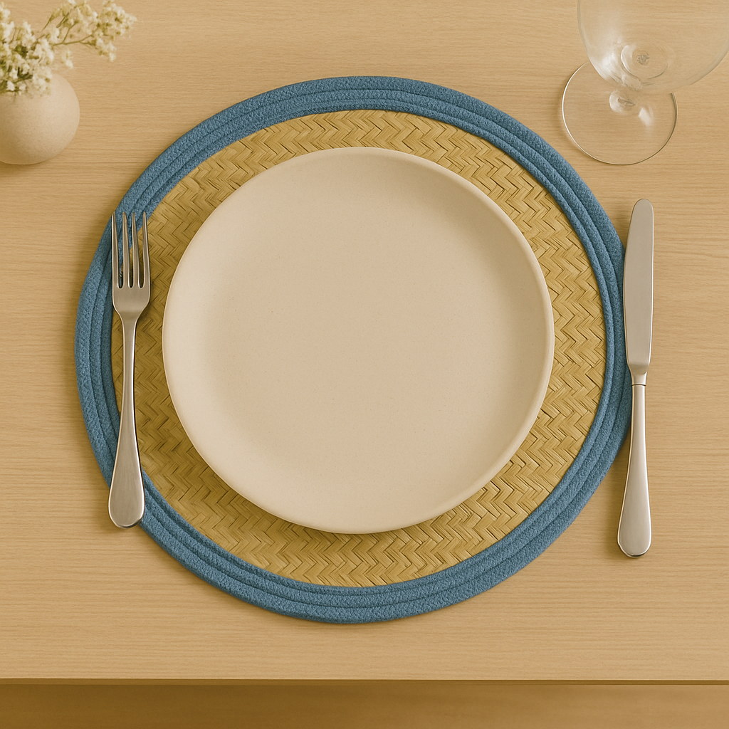Uma mistura perfeita de naturalidade e frescor. O Lugar Americano Seagrass com orla em algodão azul traz um toque tranquilo e sofisticado à sua mesa. As fibras de seagrass entrelaçadas oferecem uma textura única, enquanto a orla azul adiciona um toque de cor que complementa qualquer decoração. Com 38cm x 38cm, esta peça é ideal para momentos especiais ou refeições diárias, trazendo elegância e estilo com um toque artesanal.