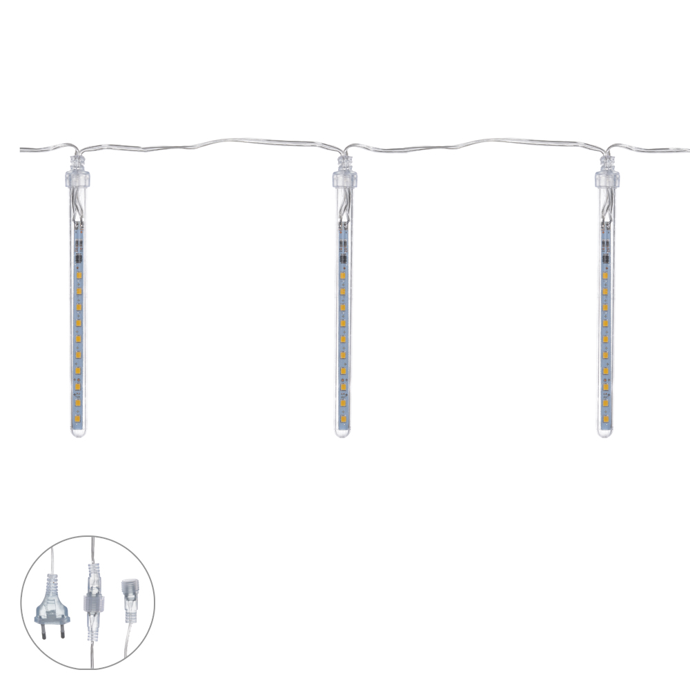 A Luz Decorativa com 15 Tubos é perfeita para criar um efeito luminoso encantador e moderno na sua decoração natalina. Com 6 metros de comprimento e 15 tubos de LED em tom branco quente, ela proporciona um brilho elegante e acolhedor, ideal para ambientes internos ou externos protegidos.