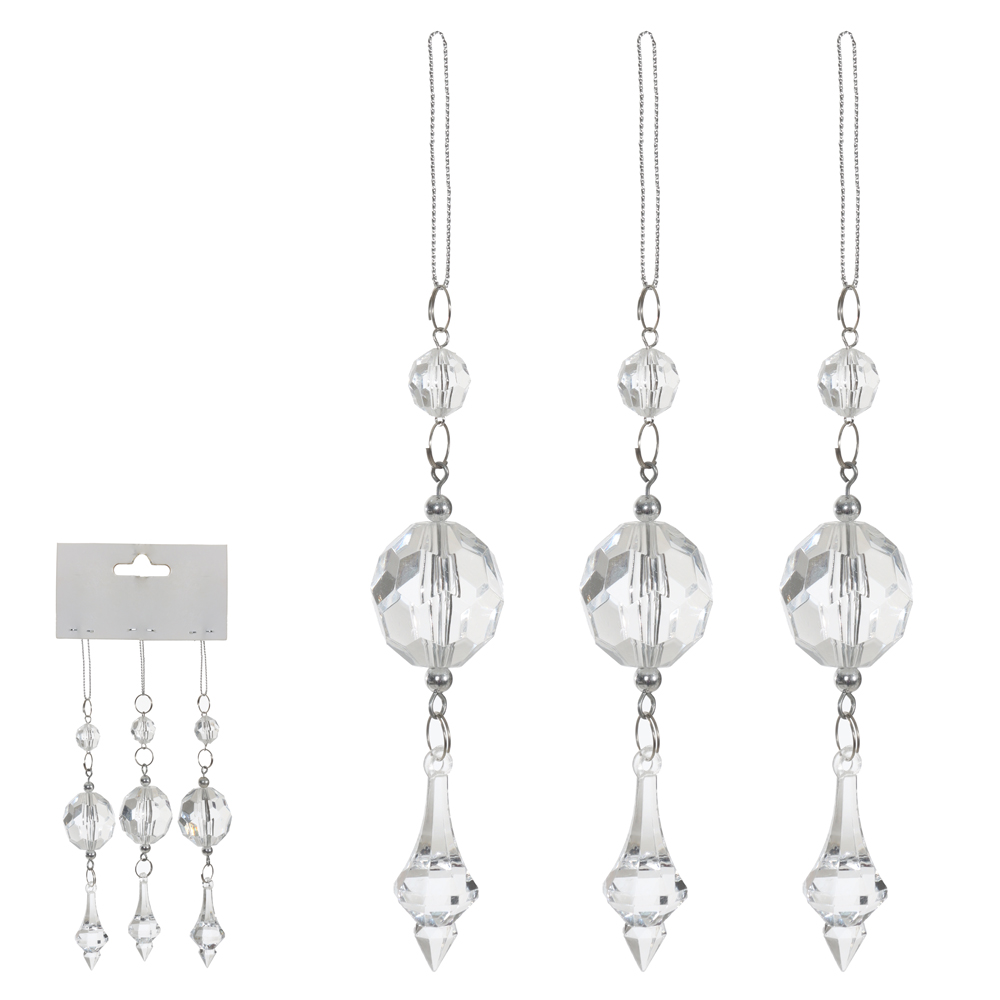 Pendente Pingente com 3 Unidades | Transparente – 20x3cm
