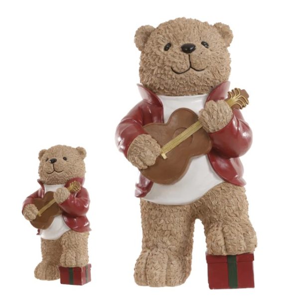 Urso Músico em Resina | Vermelho – 42X22X18cm