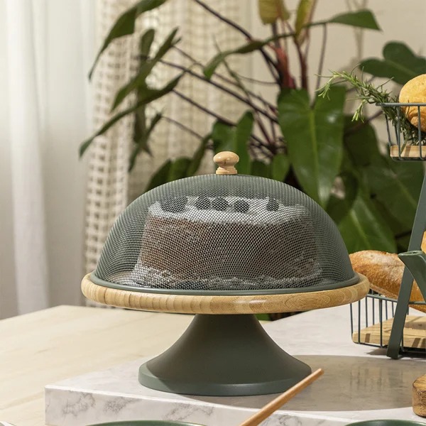 Moderno e funcional, o porta bolo Enjoy é ideal para servir bolos, tortas e sobremesas com estilo. Com base em madeira e tampa em metal na cor verde, a peça combina durabilidade e design sofisticado, trazendo um toque contemporâneo e elegante à sua mesa.