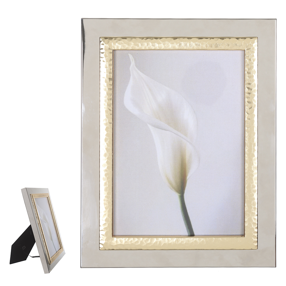 Porta-Retrato em Metal Double (Foto 13×18) – Prata e Dourado (22x17x3 cm)