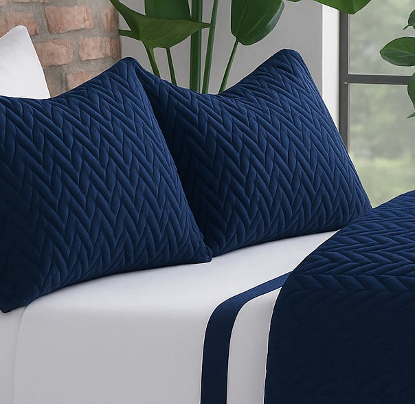 Porta-Travesseiro Matelassê Zig Avulso – Marinho | Percal 200 Fios