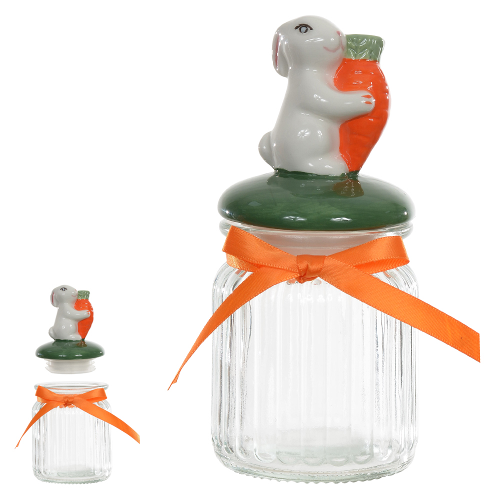 Pote de Vidro c/ tampa | Coelho | Branca e Verde – 300ML – 16,2X7,5X7,5cm