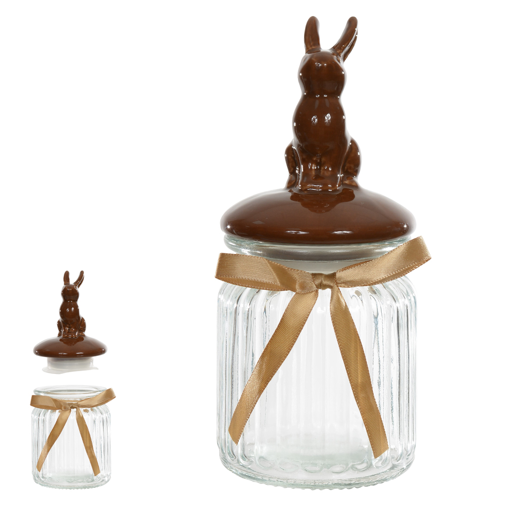 Elegante e prático, este pote de vidro com tampa e detalhe de coelho na cor marrom é ideal para armazenar pequenos itens ou alimentos com estilo. Com capacidade de 300ml e medidas de 16,2×7,5×7,5cm, combina funcionalidade e charme, adicionando um toque lúdico e sofisticado à decoração da cozinha ou de qualquer ambiente.