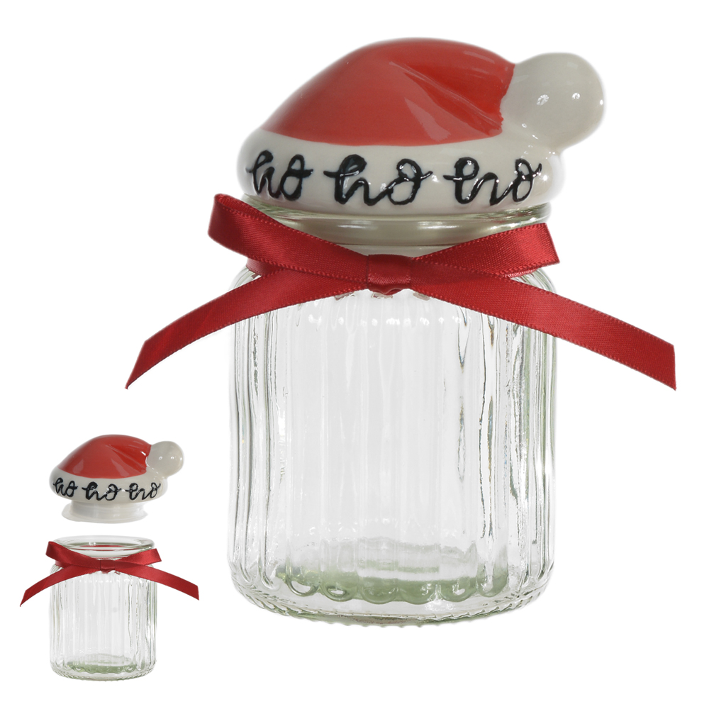 Pote de Vidro Gorro do Noel 300 ml | Vermelho/Branco – 13 cm